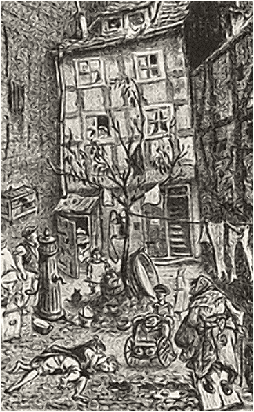 Mit der Reichsgründung 1871 wurde Berlin zu einer industriellen Metropole. Die wirtschaftliche Dynamik zog viele Menschen an – darunter auch jüdische Familien aus dem gesamten Kaiserreich. Das Scheunenviertel wurde zunehmend dichter besiedelt, viele Menschen wohnten auf engstem Raum und teilten sich Zimmer im Schichtbetrieb. Eine lokale Berühmtheit war die Kneipe „Mulackritze“, ein beliebter Treffpunkt für Arbeitslose.