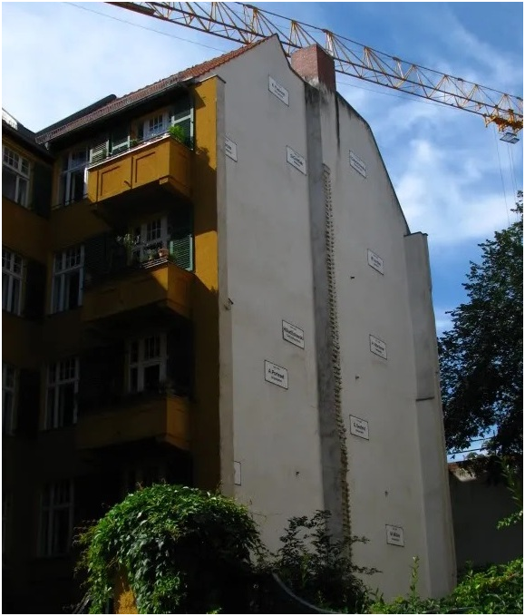 Die Idee mit den Tafeln fand nicht nur auf dem Pflaster Unterstützung. An vielen Häusern wurden sie nach demselben Prinzip ebenfalls angebracht. Eine bekannte Installation in Berlin ist das „Verschwundene Haus“ (Missing House), das den Verlust noch deutlicher unterstreicht. In einer Straße, in der die Häuser aufgereiht sind, fällt plötzlich eine Leere auf, eine stille Lücke. Einst stand hier ein Haus. An den Wänden der benachbarten Gebäude sind Tafeln mit den Namen derer angebracht, die in dem zerstörten Haus wohnten. Ja, es wurde zerstört, aber die Stimmen der Bewohner sind geblieben. Und im Bayerischen Viertel gibt es Tafeln mit NS-Gesetzen, die an Laternenpfählen angebracht sind. Listen derer, die zum Tode verurteilt waren.