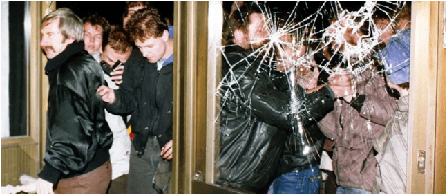 Гнів народу не знав обмежень, він шукав виходу – і знайшов. У ті хвилини вже не йшлося про жагу справедливості чи моральне очищення, натовп прагнув реваншу за всі роки принижень і знущань. Шафи летіли сторчма, шибки дзеленчали під ударами, документи згрібали зі столів і викидали у вікна. Але навіть у цій бурі знайшлося місце для ритуального жесту. Перед входом до Головного управління зовнішньої розвідки, яка опікувалася шпигунською діяльністю поза межами НДР, натовп зупинився. Цих фахівців у країні поважали, тому їхній бастіон залишився недоторканим.
