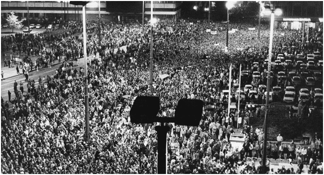 Фактично бастіон впав ще до того, як по ньому вдарили. Але зовні, біля головної брами на Рушештрассе, ситуація розгорталася вже без сценарію. Люди прибували масово, захоплені закликом “Нового форуму”, який організував мирний протест. Ініціатори події навіть підготували каміння й розчин – не для штурму, а для символічного мурування нової пам’ятної “стіни” навколо споруди, відомої сучасним берлінцям як музей “Штазі”. Хвилювання натовпу набирало обертів, представники “Нового форуму” почали перемовини з керівниками міністерства.