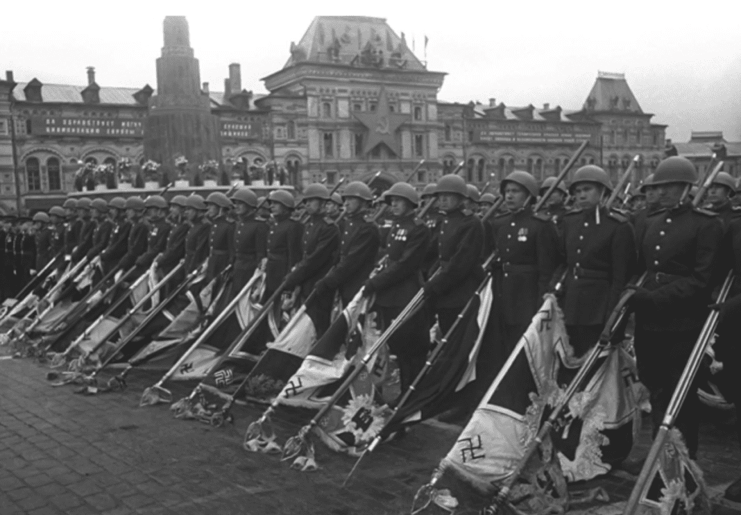 У травні 1945 року перед радянським військовим командуванням постало завдання, якому не позаздрив би жоден театральний режисер: організувати публічну “стратифікацію” ворожих символів так, щоб це виглядало гідно, злагоджено й символічно. Йшлося не лише про демонстрацію перемоги, а й про акт, який мав увійти в історію – кидання нацистських прапорів, привезених із Берліна, до підніжжя Мавзолею на Червоній площі. Але для цього треба було знайти, що кидати. Підрахували: парадний батальйон мав пронести 200 гітлерівських прапорів і штандартів. І тут організатори натрапили на несподівану перешкоду: в їхньому розпорядженні не було жодного.